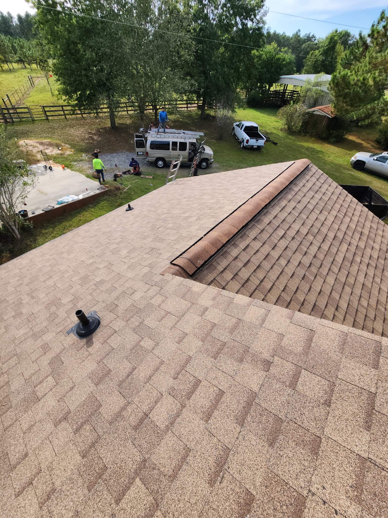 We tackled a full roof replacement on this property in Doerun, GA, which already had an existing solar array.